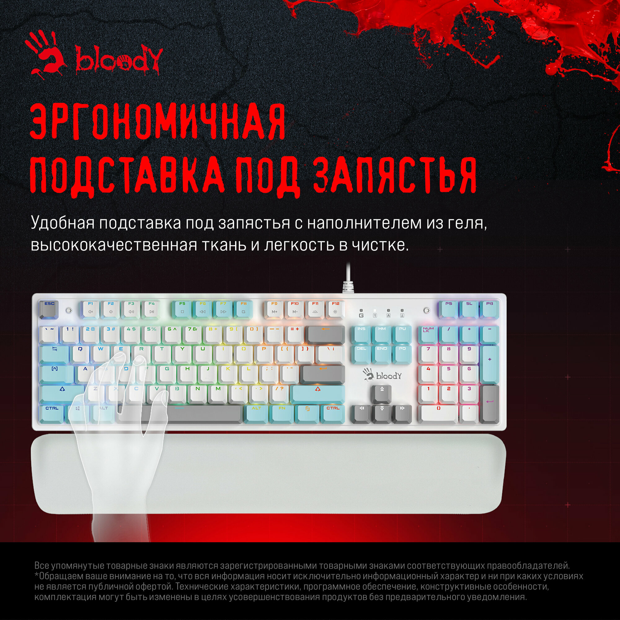 Купить Клавиатура A4TECH Bloody S515R, USB, c подставкой для запястий, белый [s515r icy white]
