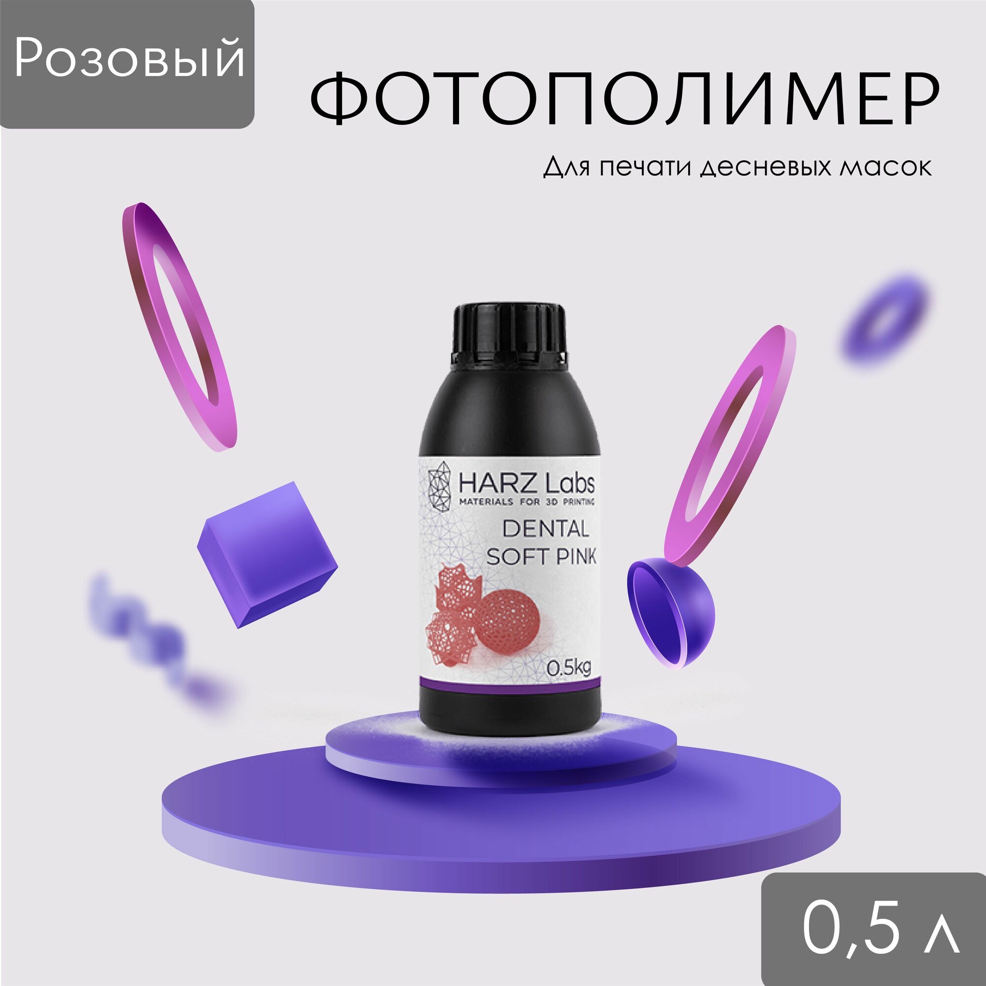 Купить Стоматологическая фотополимерная смола для 3D-печати HARZ LABS Dental Soft Pink для LCD/DLP 3D принтеров 365-405 нм (0.5 кг)