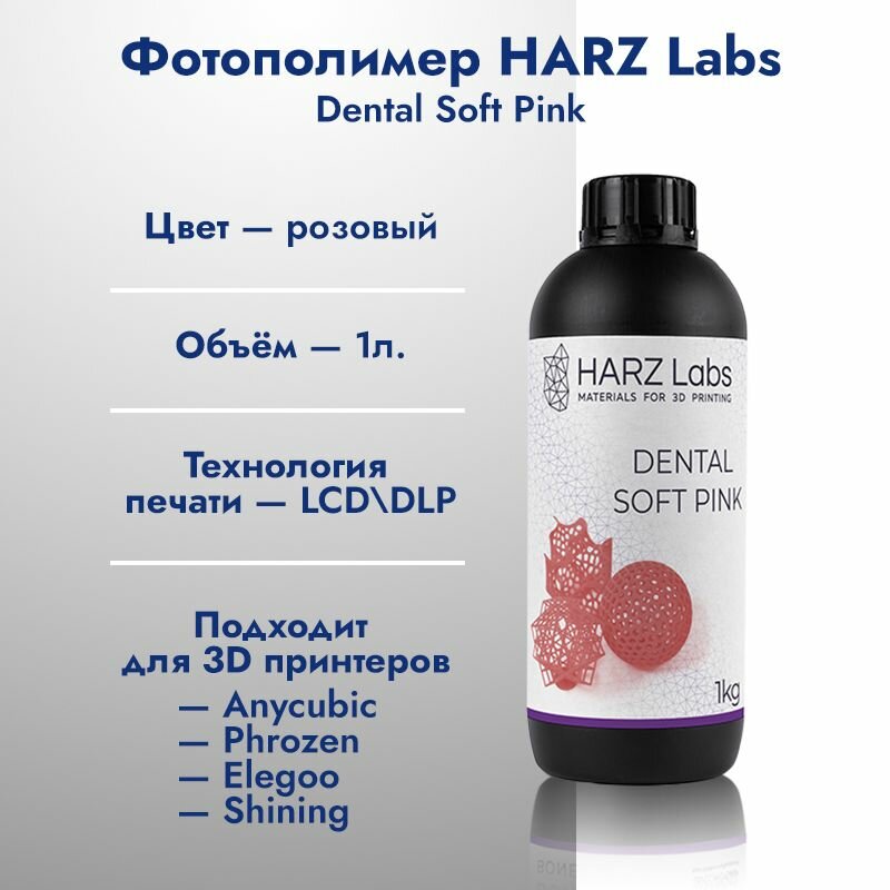Фотополимерная смола HARZ Labs Dental Pink Soft, розовый (1000 гр) интересное: