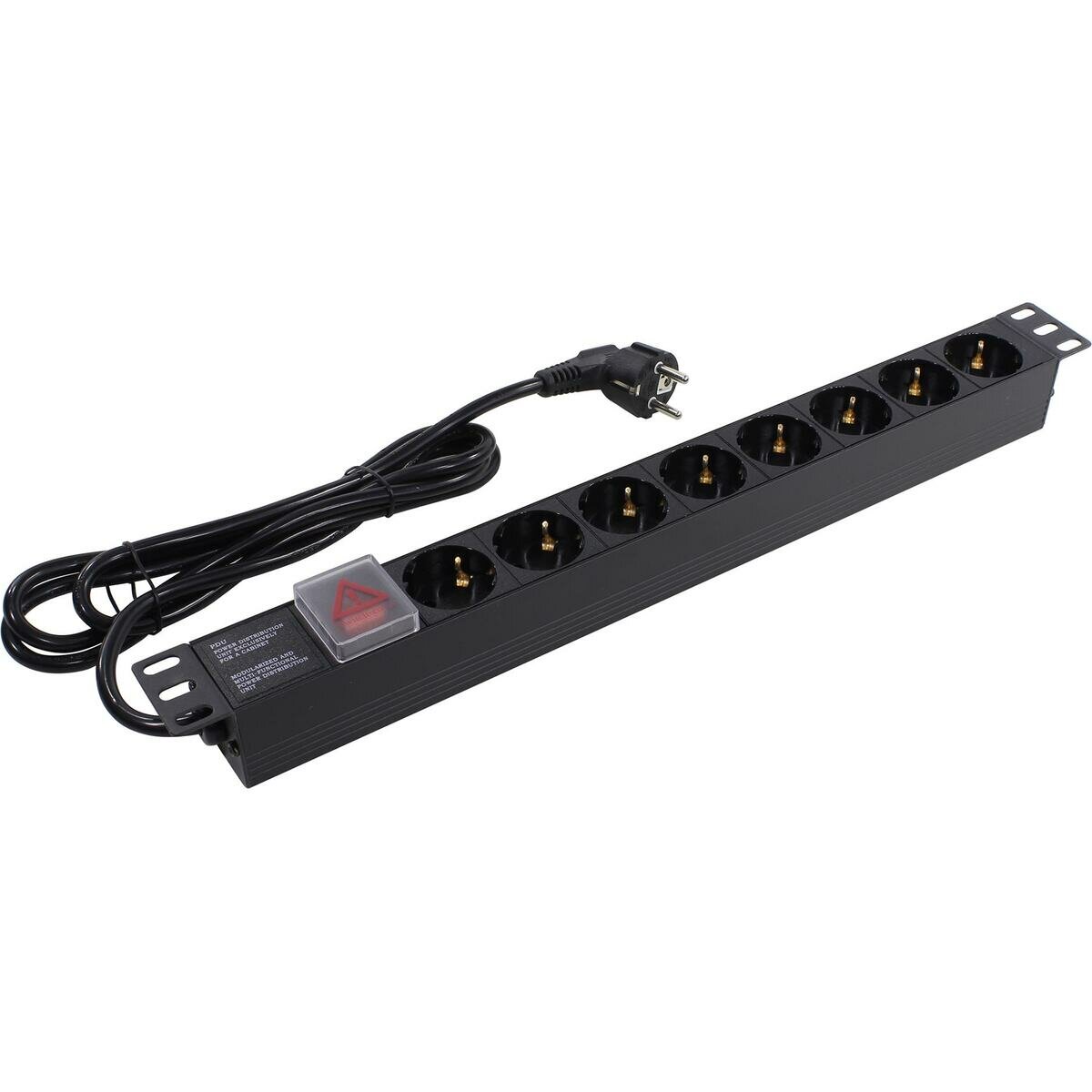 Блок розеток горизонтальный ExeGate ServerPro PDU-19H803 Al-8S-EU2CU-SW (19", 1U, Алюминий, 8 Schuko, кабель с евровилкой VDE-250V-16A-3*1.5mm2, медь, 2 метра, выкл. с подсветкой, черный, RTL) EX280842RUS