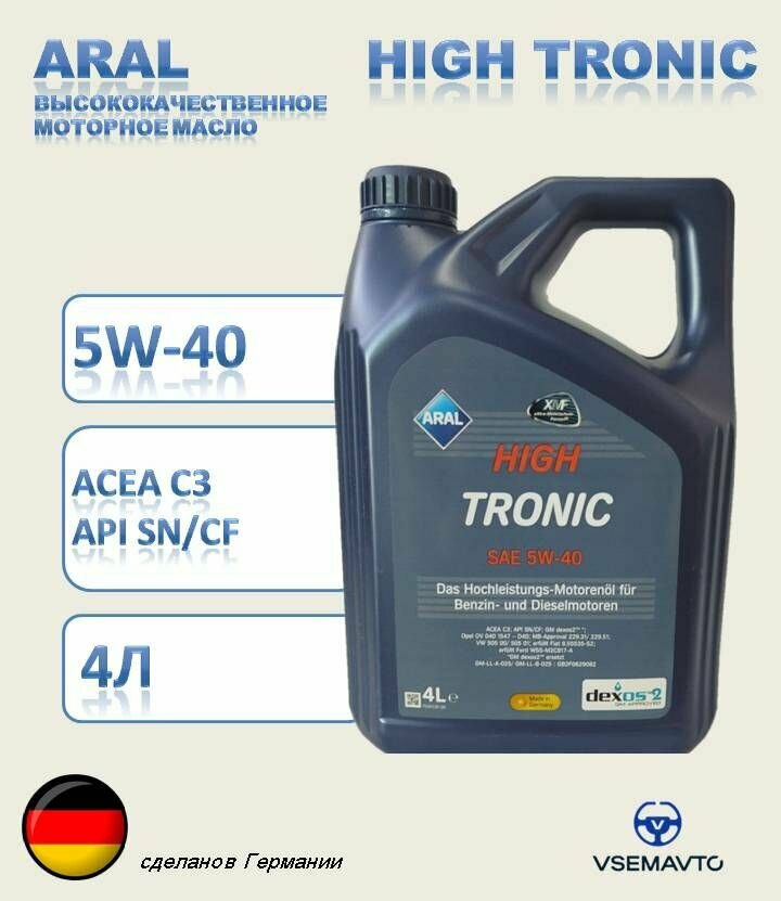 Ниже Вы можете прочитать отзывы на Моторное масло арал 5W40 High Tronic 4л, ознакомится с подробными характеристиками, посмотреть интересные обзоры и фотографии на Моторное масло арал 5W40 High Tronic 4л.