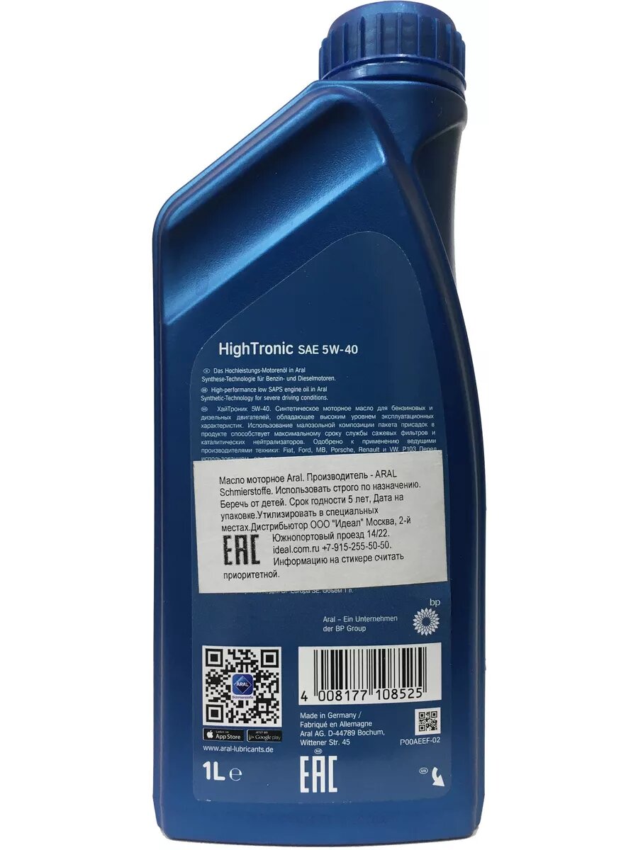 Синтетическое моторное масло ARAL High Tronic SAE 5W-40, 1 л