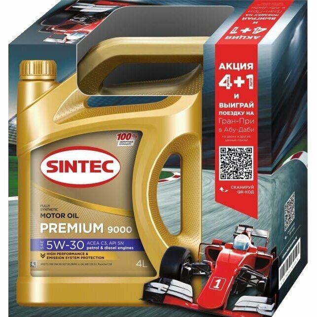 Сохранить! Акция! 4 Л + 1 Л В подарок Моторное масло SINTEC PREMIUM 9000 SAE 5W-30, API SN, ACEA C3 Синтетическое 5 л интересное: