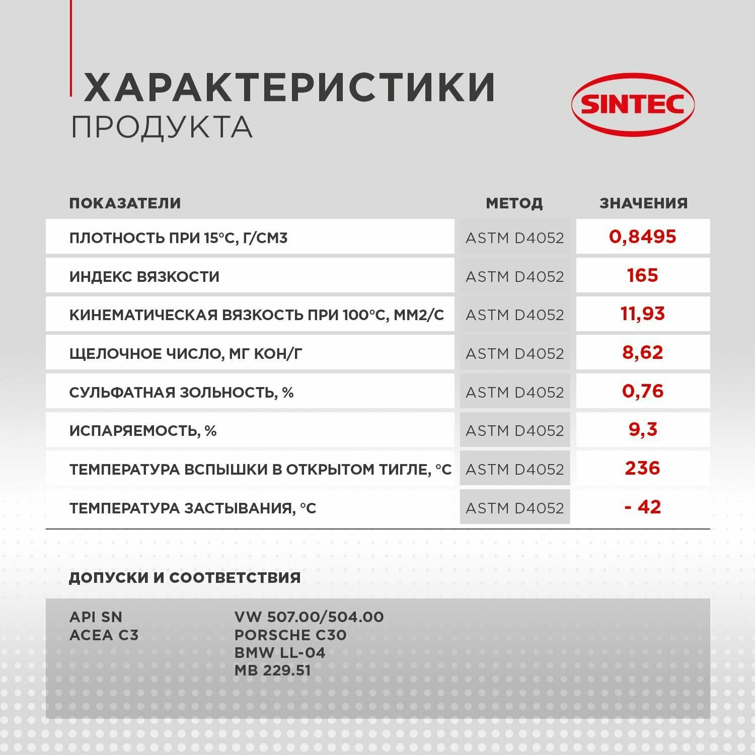 масло sintec 5w30 premium 9000 api sn acea c3 1л син 900375/600130