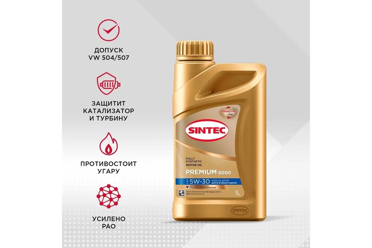 СохранитьСинтетическое моторное масло SINTEC PREMIUM 9000 SAE 5W-30 ACEA C3, 1 л. интересное: