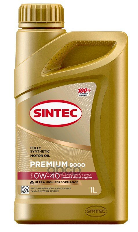 SINTEC Масло Моторное Синтетика 4Л Масло Sintec Premium 9000 0W-40 A3/B4 Sp/Cf 4Л