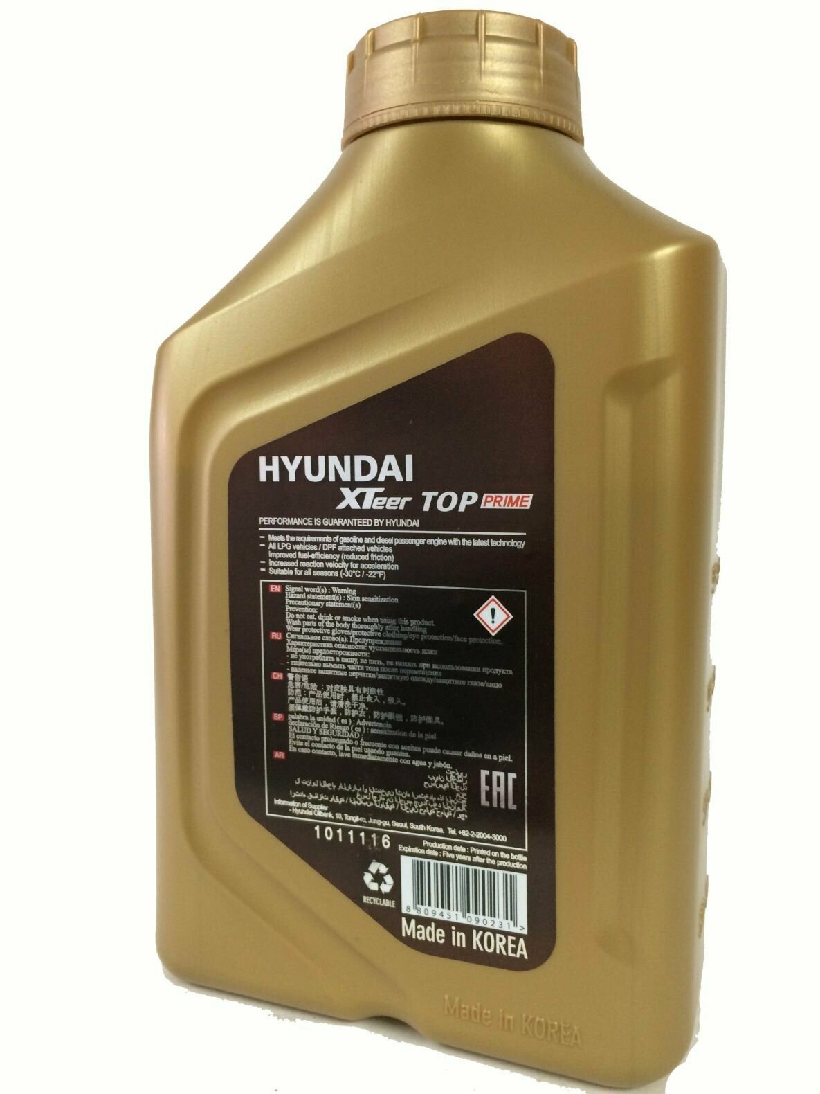 HYUNDAI XTeer TOP Prime 5W40, 1 л, API SM, ACEA A3-02, A3/B4-04, B3-98, C3-07 PAO, 100% SYNTHETIC, Моторное масло синтетическое