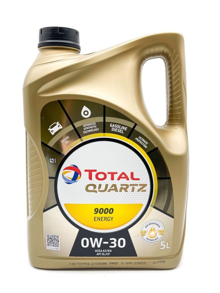 Масло Моторное Синтетическое 5 Л. Total Quartz 9000 Energy 0w-30, Acea A3, B4, Api Sl, Cf, Vw 505 00, Vw 502 00, Mb 229.5, Mb 229.3 TotalEnergies арт. 213686