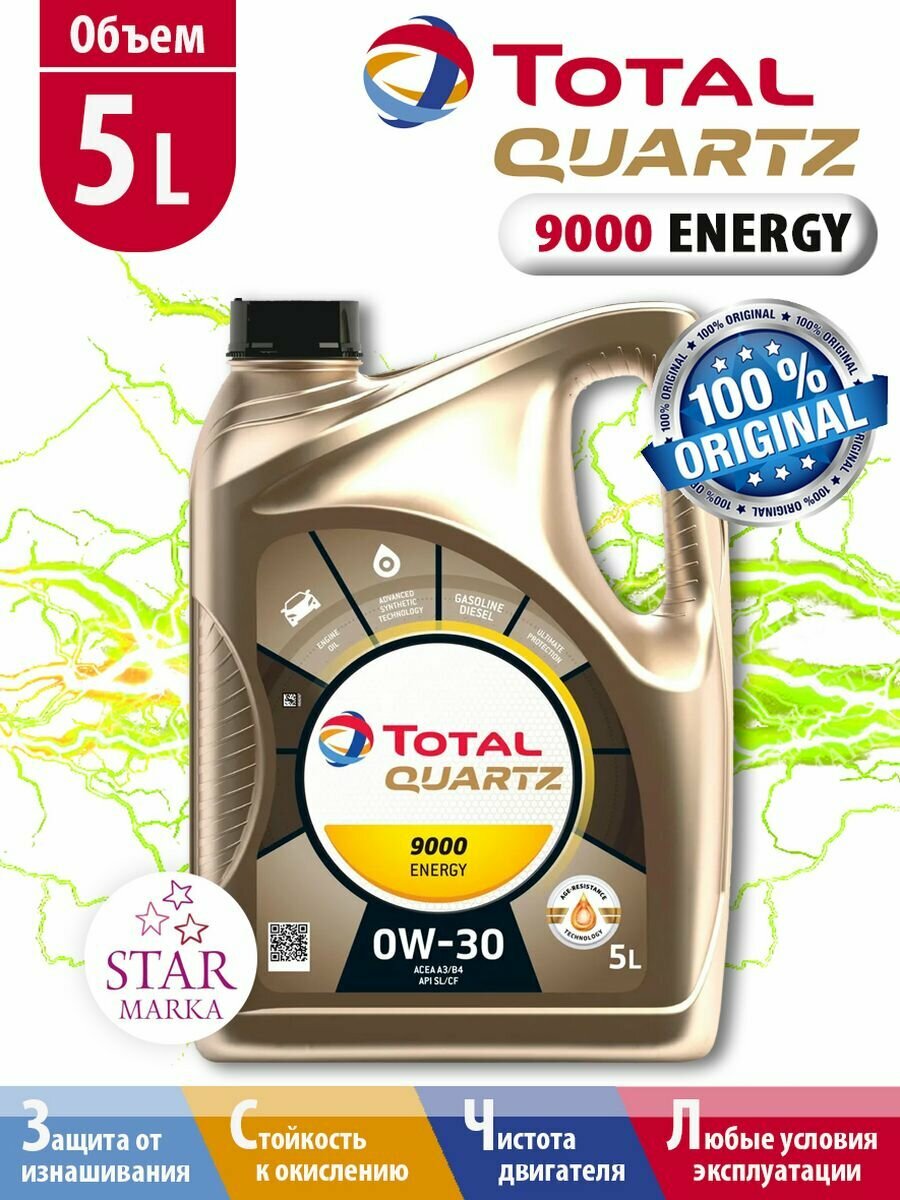 Масло моторное синтетическое QUARTZ 9000 ENERGY 0W30 API SL/CF, ACEA A3/B4 1л (1 шт.)