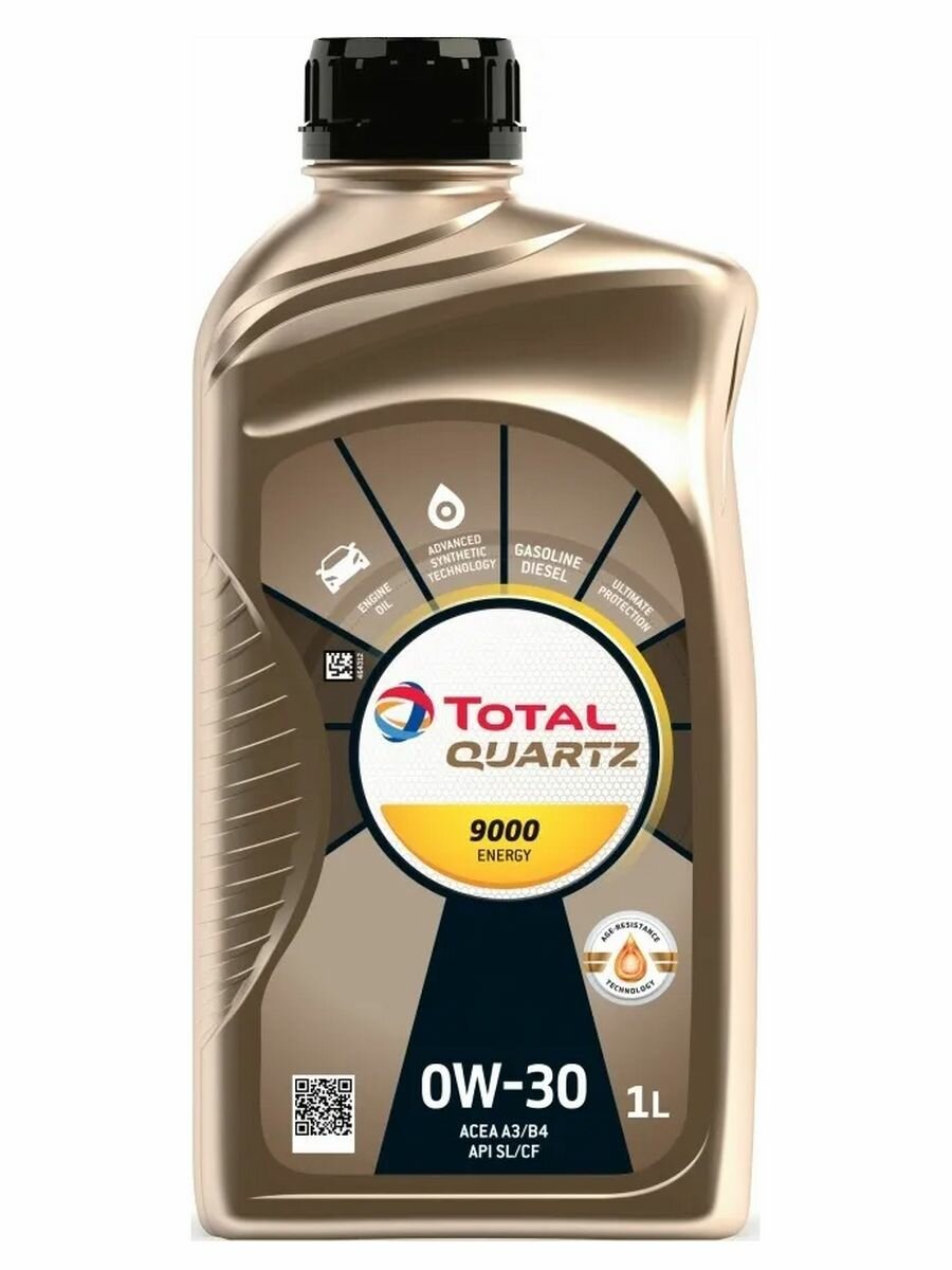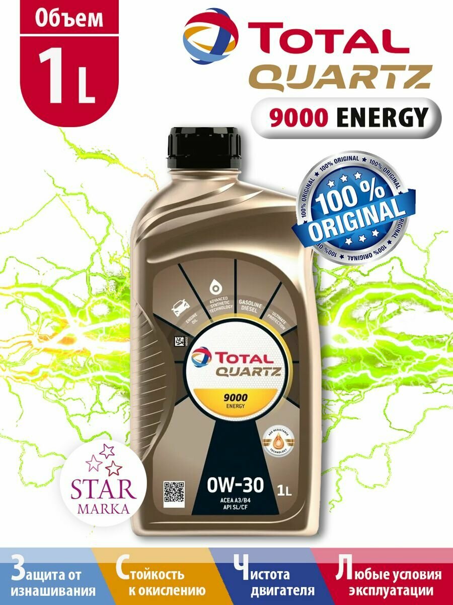 Масло моторное синтетическое QUARTZ 9000 ENERGY 0W30 API SL/CF, ACEA A3/B4 1л (1 шт.)