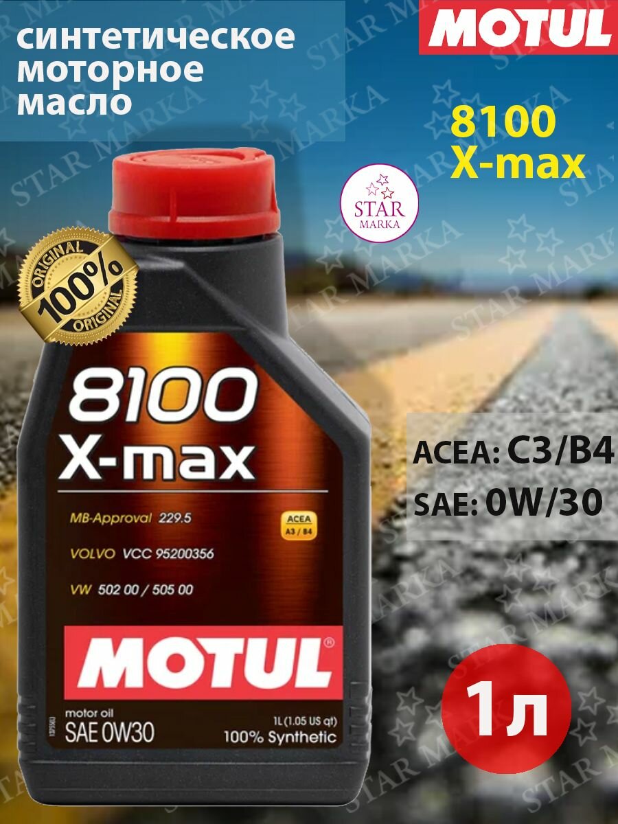 MOTUL 106571 MOTUL 0W30 (5L) 8100 X-MAX масло моторное\асеа А3/В4 АPI SL MB-Approval 229.5 VW 502 00/505 00