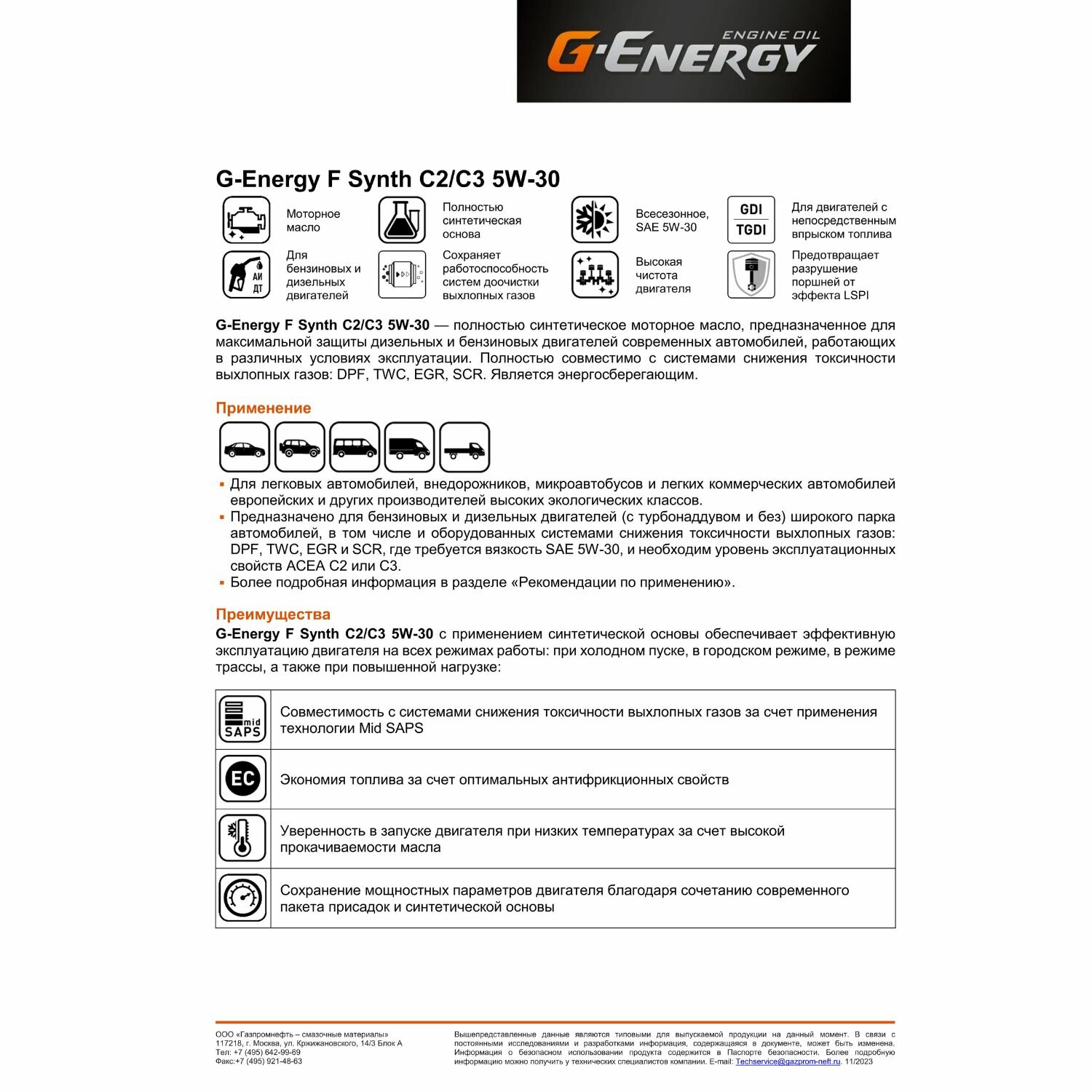 F SYNTH C2C3 5W-30 (1Л), G-ENERGY 253140492 (1 шт.)
