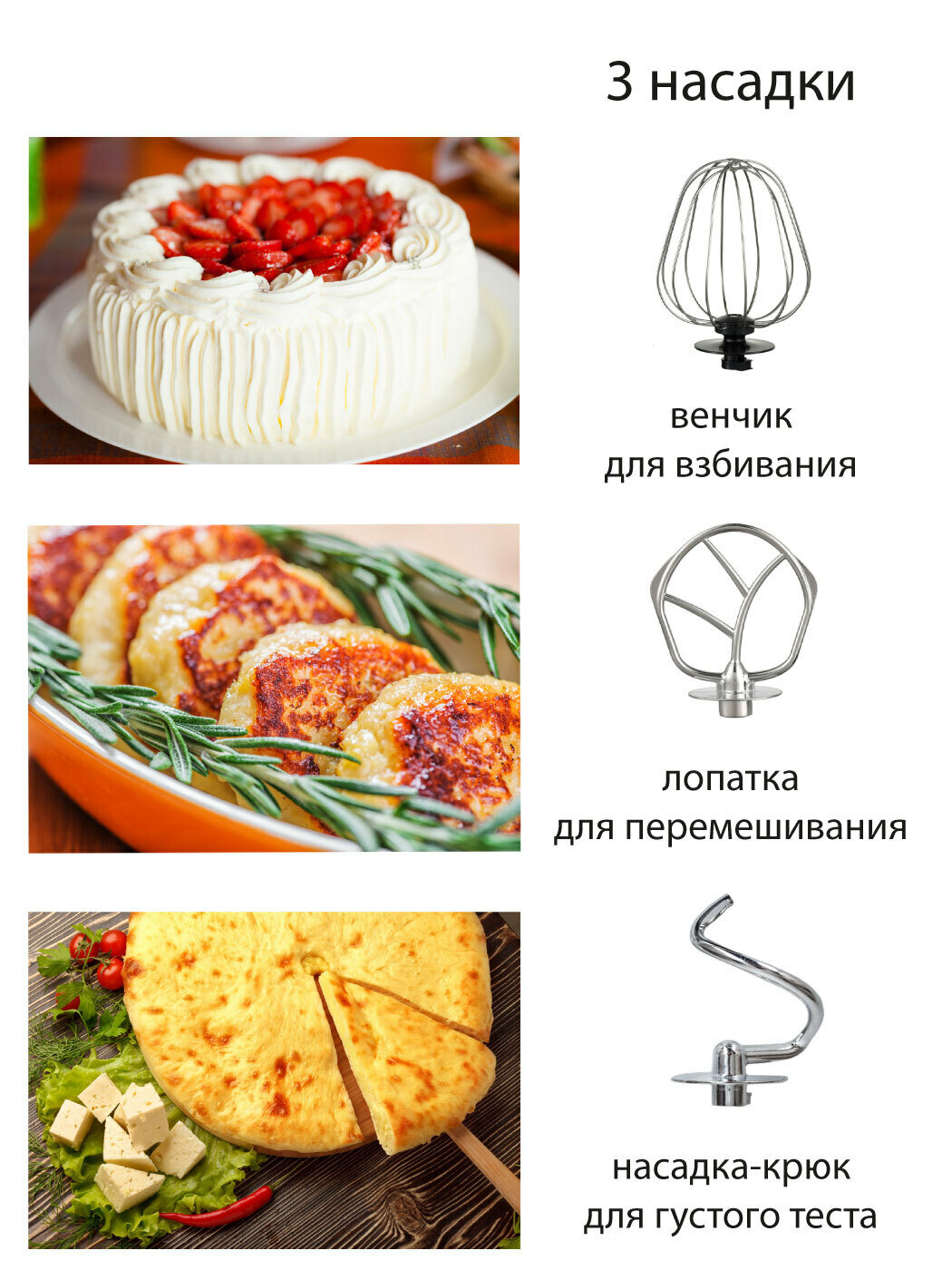 Миксер планетарный Pioneer MX327 red с чашей из нержавеющей стали 6 л, 6 скоростей, 3 насадки, импульсный режим, защита двигателя от перегрева, 1200 Вт