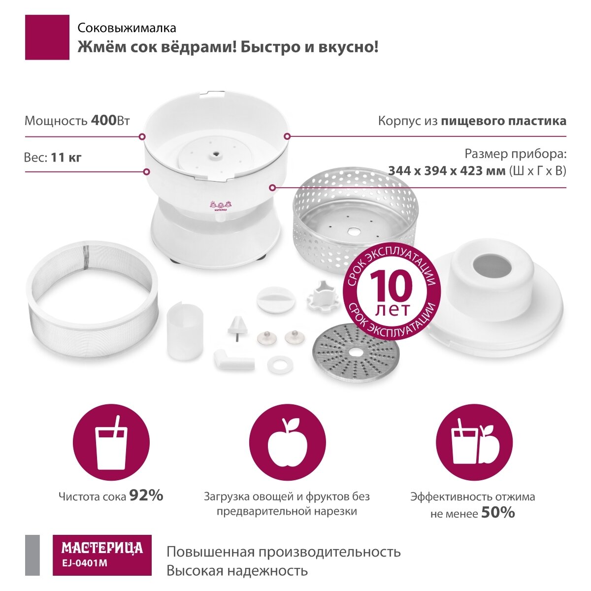 Соковыжималка Мастерица Ej-0401m белый Ej-0401m белый . интересное:
