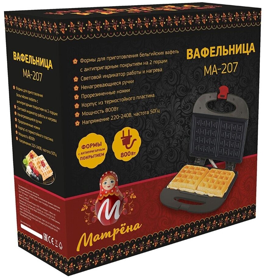 Вафельница Матрена МА-207, 800Вт, черная 8154