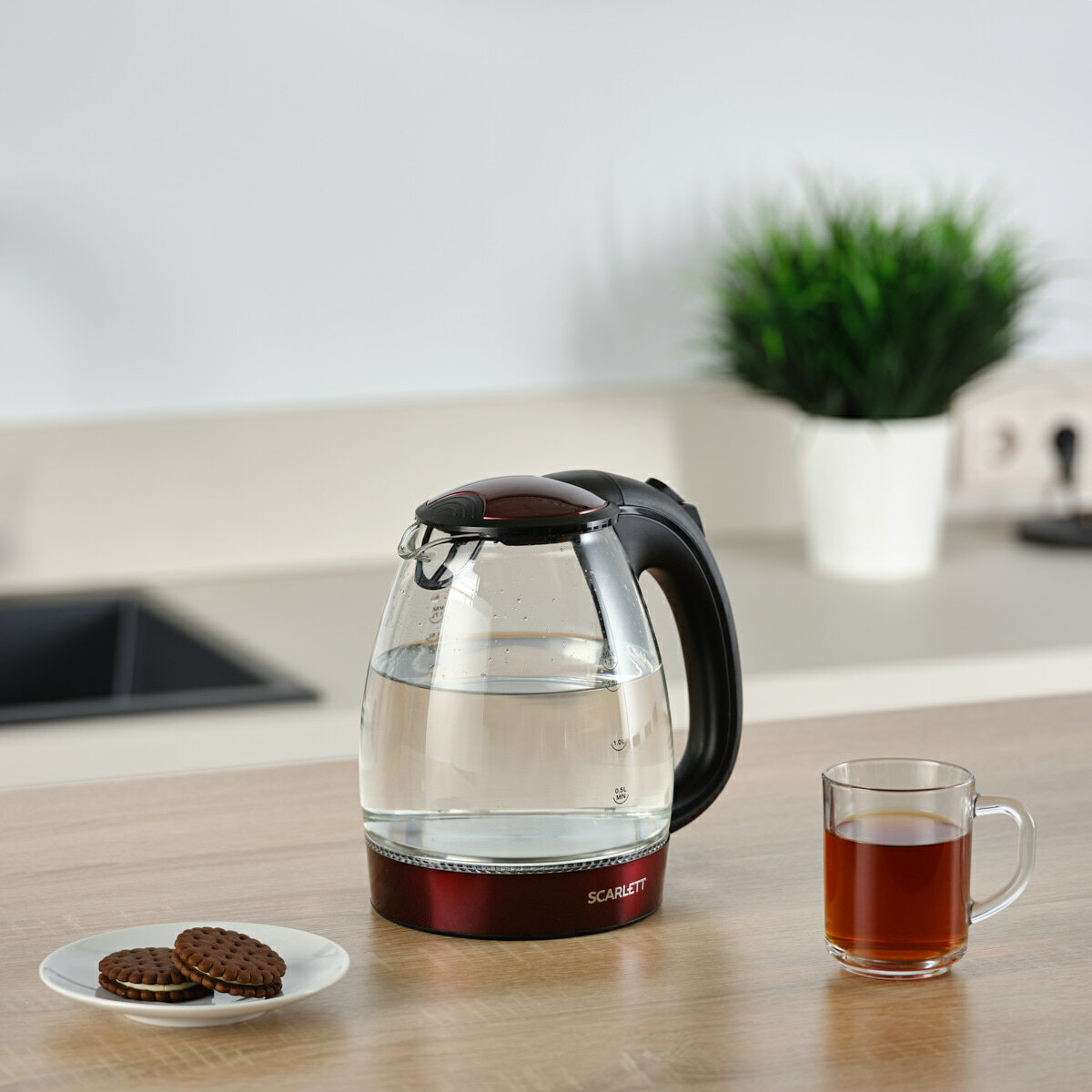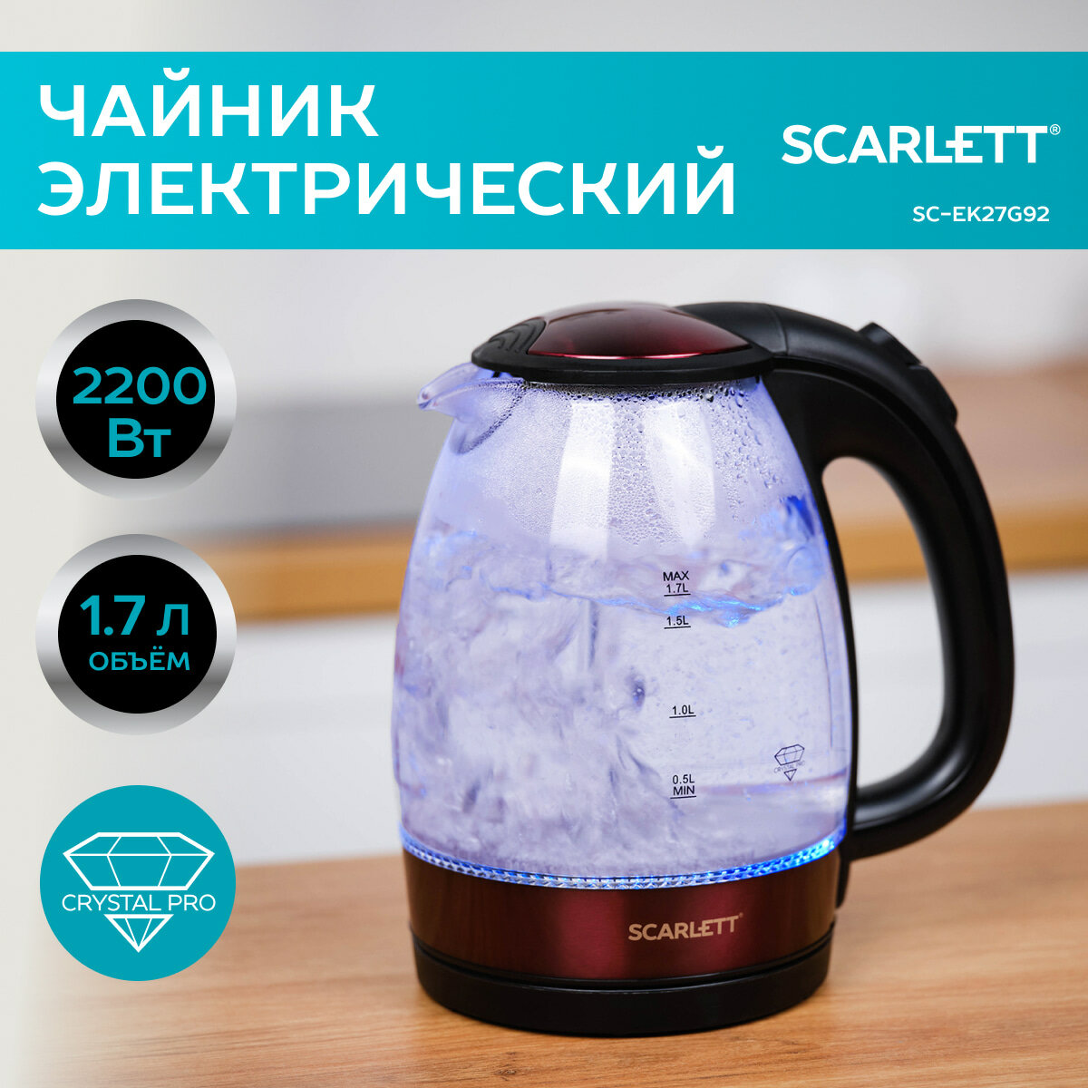 Чайник SCARLETT SC-EK27G92 стекло/черный/бордо