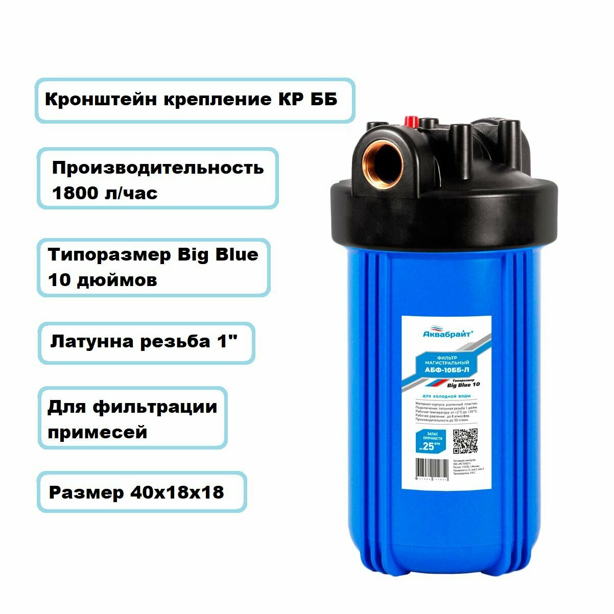 Магистральный фильтр Аквабрайт АБФ-10ББ-Л, 10 Big Blue, 1"