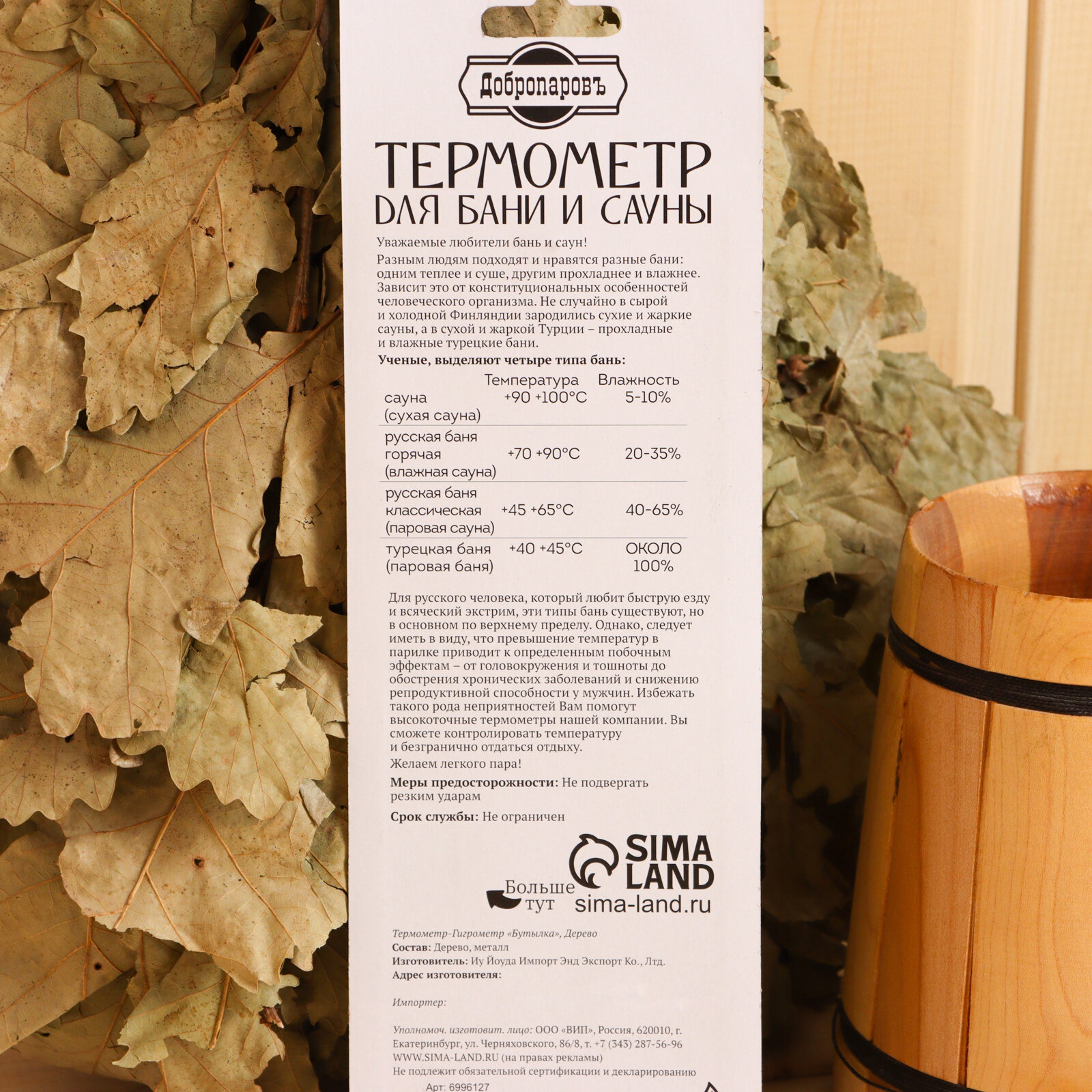 Термометр спиртовой "Бутылка", деревянный 140 С, "Добропаровъ"