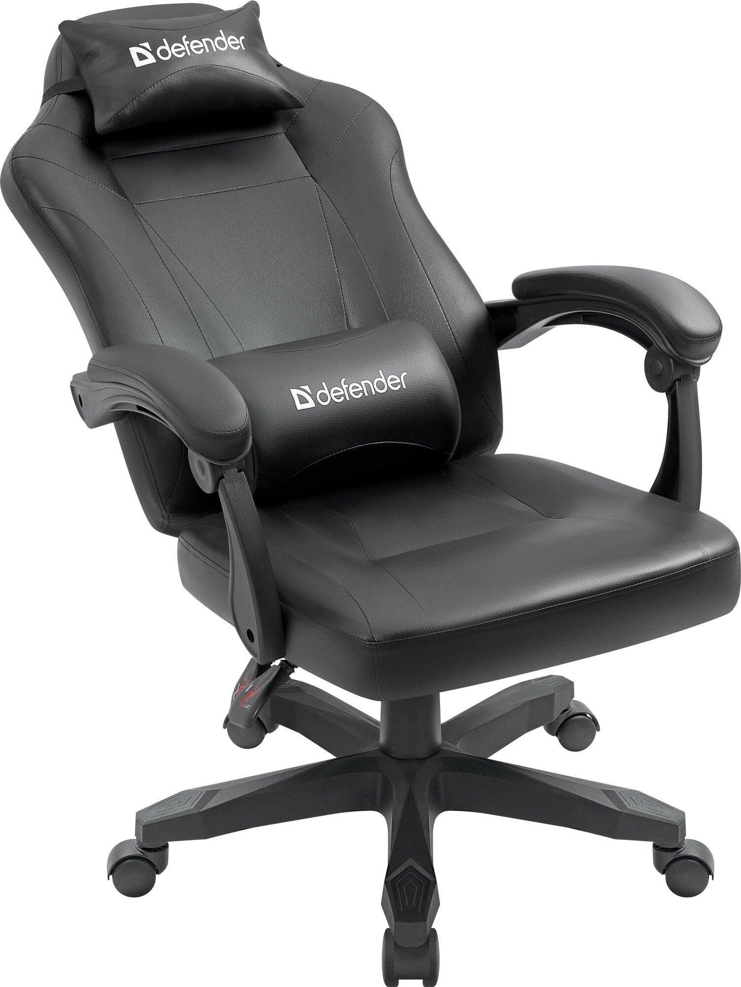 Купить Кресло компьютерное игровое Defender Master, черное, из экокожи, 2 подушки, до 140кг