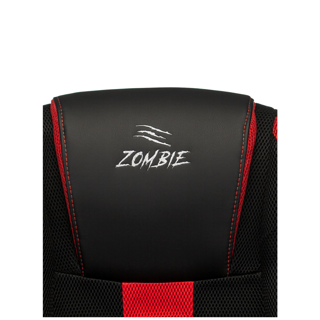 Кресло компьютерное игровое Zombie, экокожа, ткань, черное, красное, крестовина пластик - Кресло геймерское, с подголовником