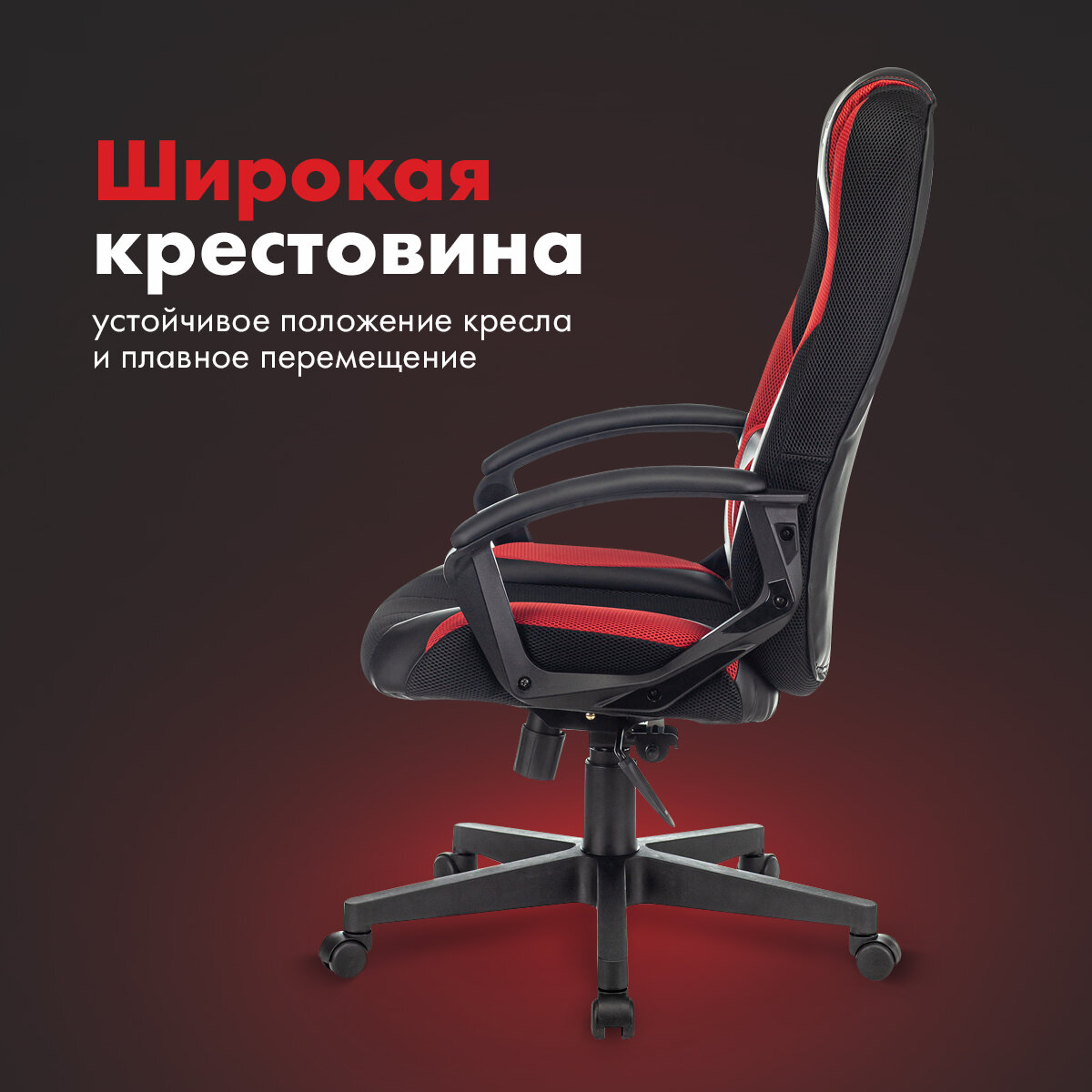 Кресло игровое Zombie 9 черный/красный, ткань/эко.кожа / Компьютерное геймерское кресло, крестовина пластик