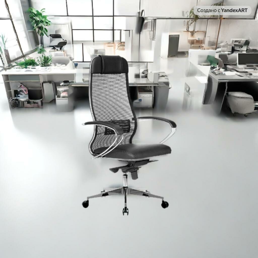 Кресло руководителя Метта "Samurai" Comfort-1.01, CH-2, сетка Х2 черн/кожа черн."NewLeather", №721/MPES, мультиблок