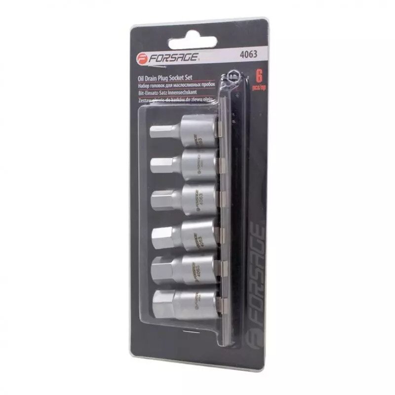 1/2"Набор головок-6-гранников для маслосливных пробок 6пр.(8,10,12,14,17,19) на планке Forsage F-4063