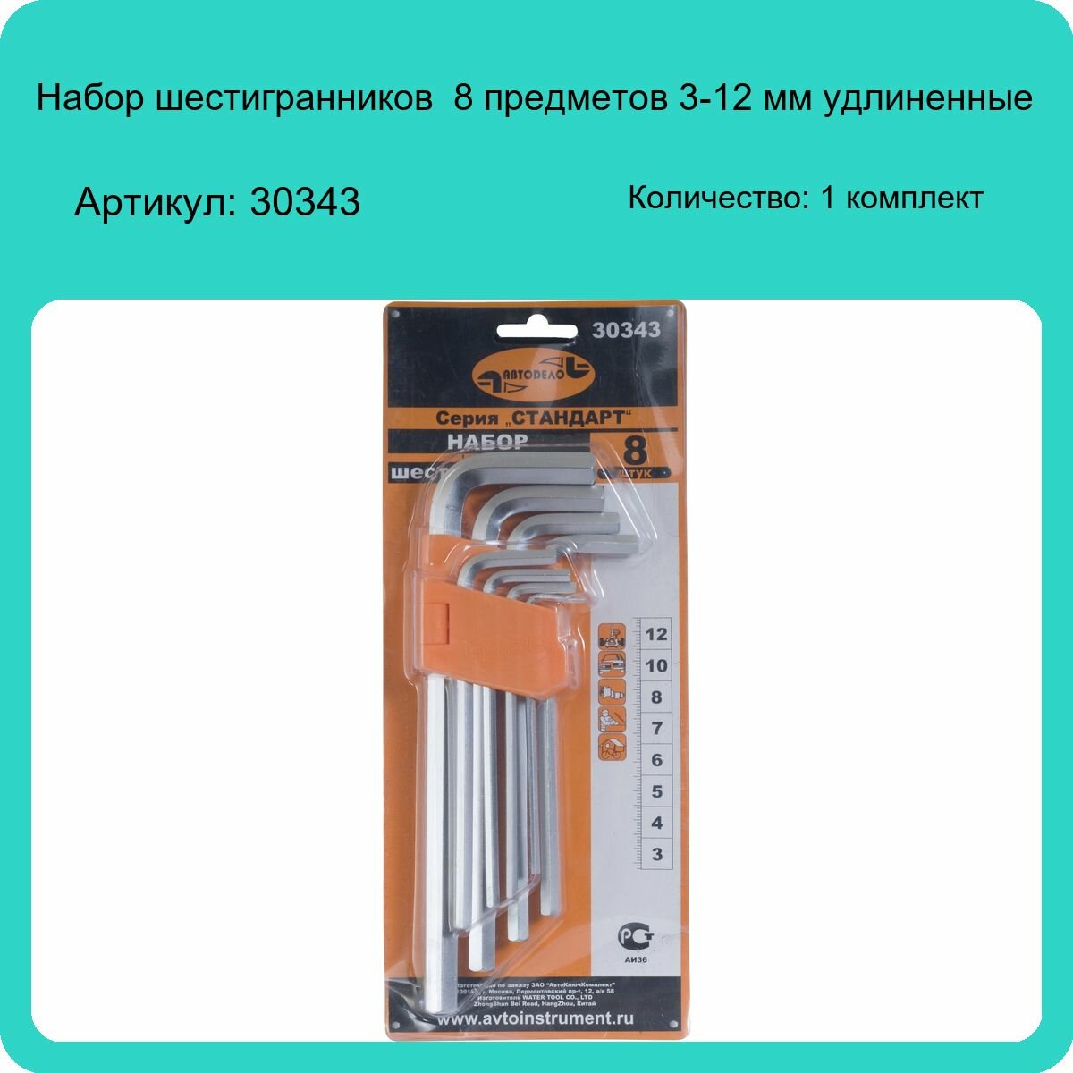 Набор Ключей Шестигр 8предметов Автодело 312мм Длинные В Блистере АвтоDело арт. 30343