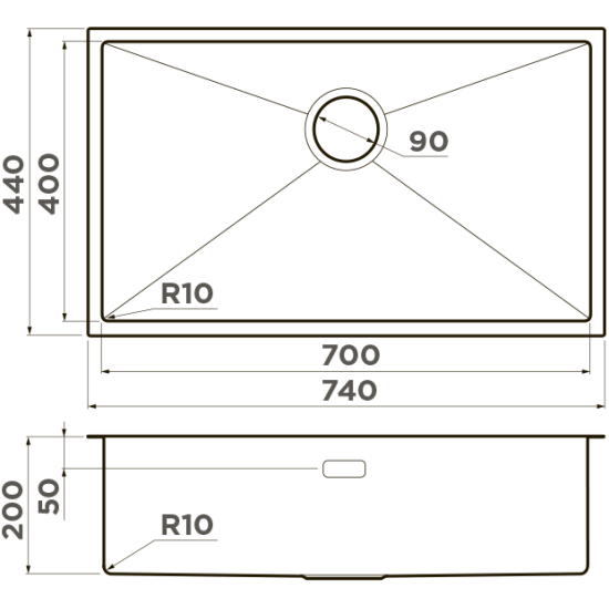 Врезная кухонная мойка KAISER KSM-5343, 53х43см, нержавеющая сталь