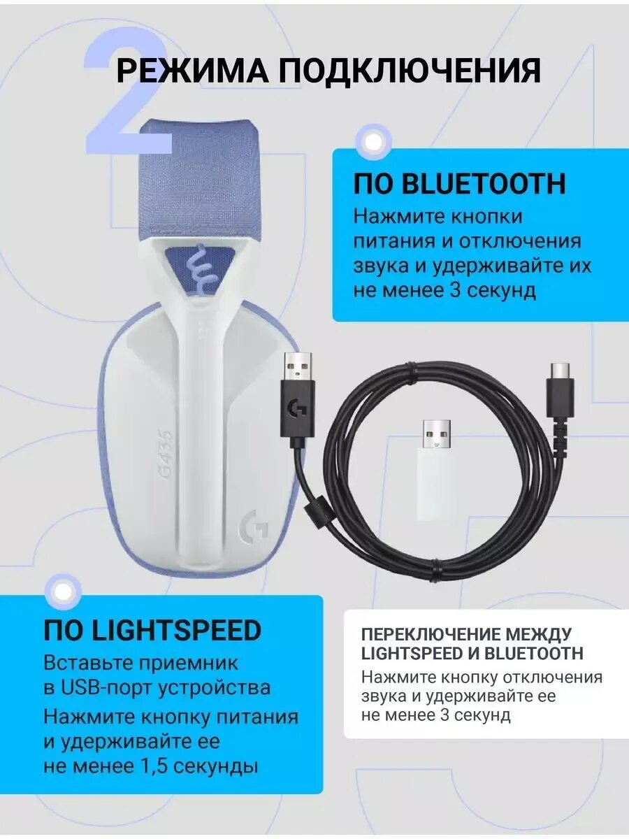 СохранитьИгровые беспроводные наушники Logitech G G435, белый/сиреневый интересное: