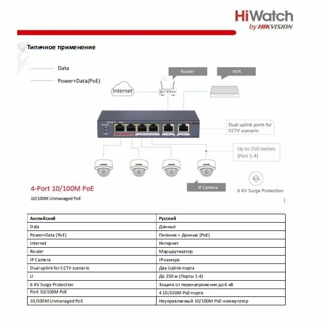 Коммутатор HiWatch DS-S604P, количество портов: 6x100 Мбит/с (DS-S604P)