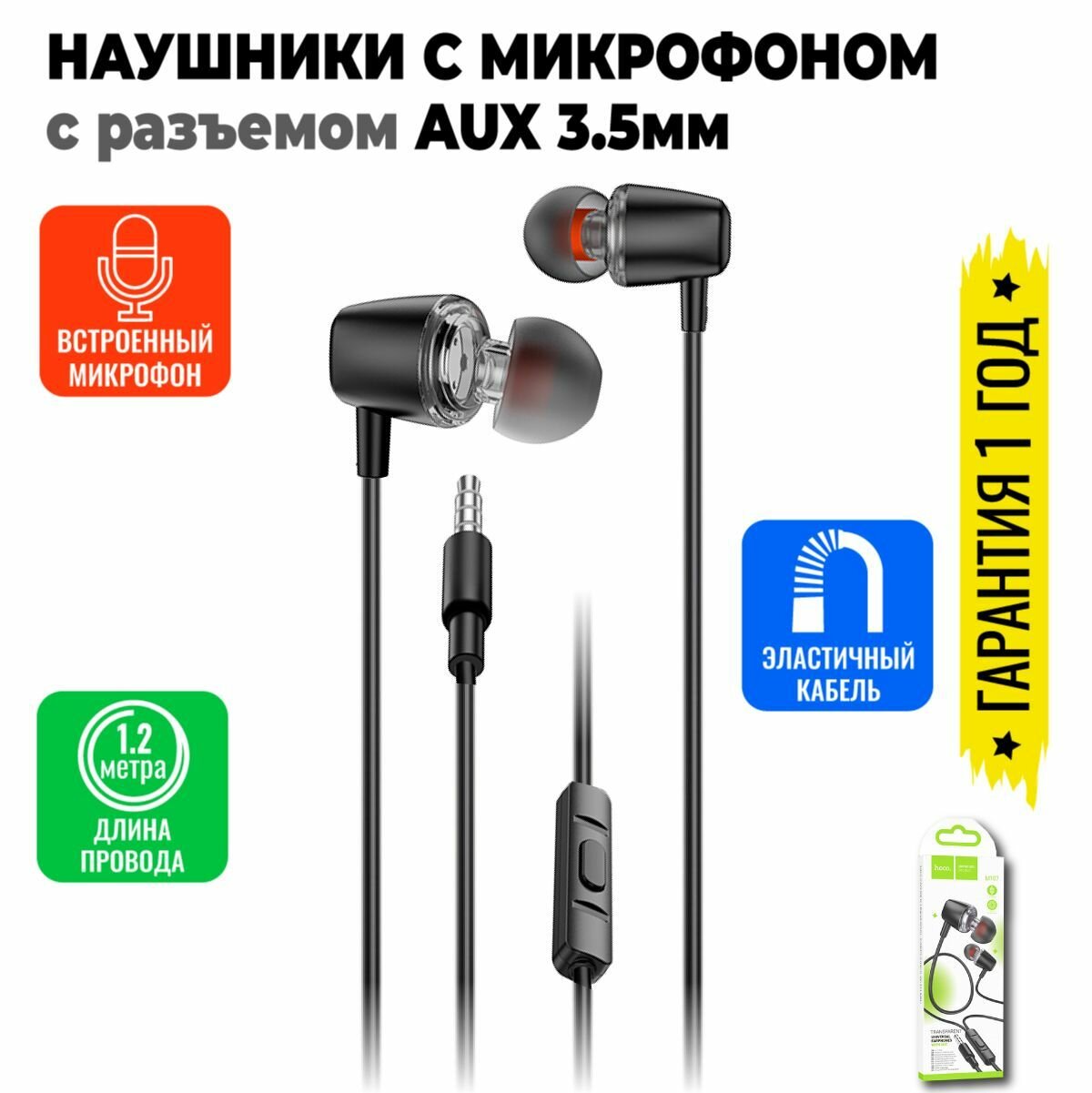 Наушники с микрофоном Hoco M107, черные