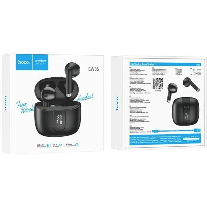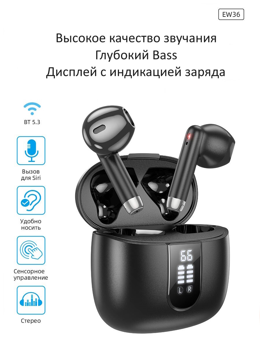 Купить Наушники Hoco EW36 Tws, беспроводные, вкладыши, Bt5.3, 30/400 мАч, микрофон, черные Hoco 9603944