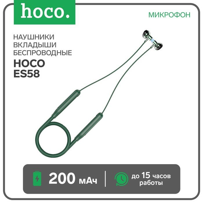 Наушники Hoco Es58, беспроводные, вакуумные, Bt5.0, 200 мАч, микрофон, зеленые Hoco 7686855