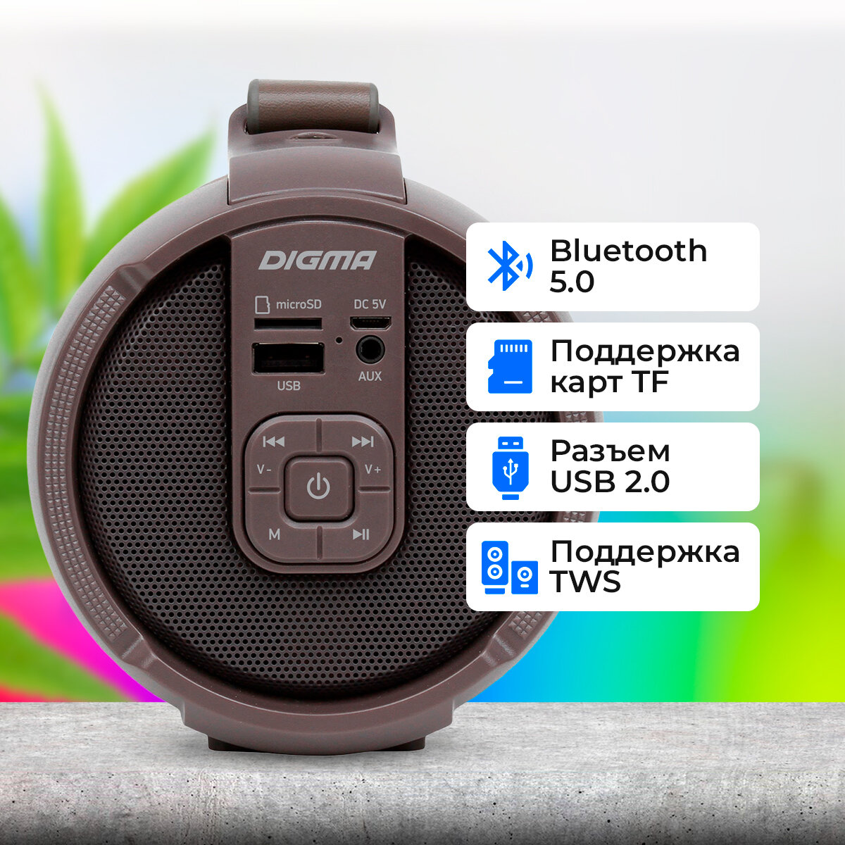 Портативная акустика DIGMA S-25, 10 Вт, серый