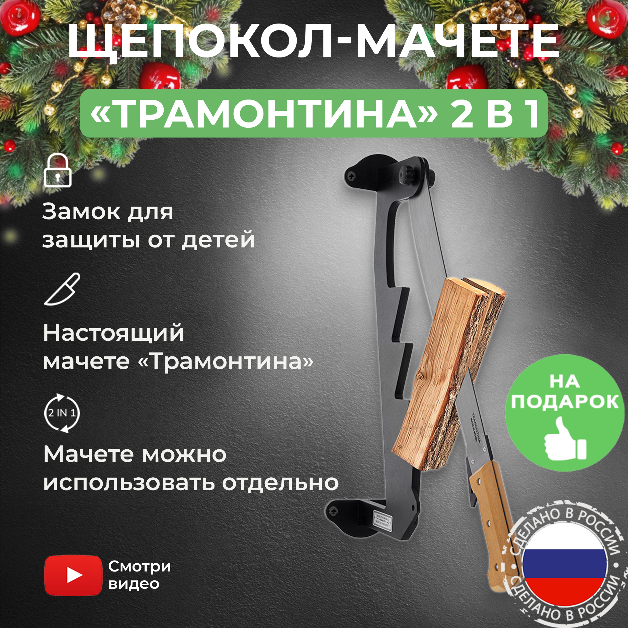 СохранитьЩепокол-рычаг настенный KOLUNDROV Трамонтина, съемный мачете, в подарочном наборе с точилкой для инструмента, щепкокол ручной для дачи и дома, черный интересное: