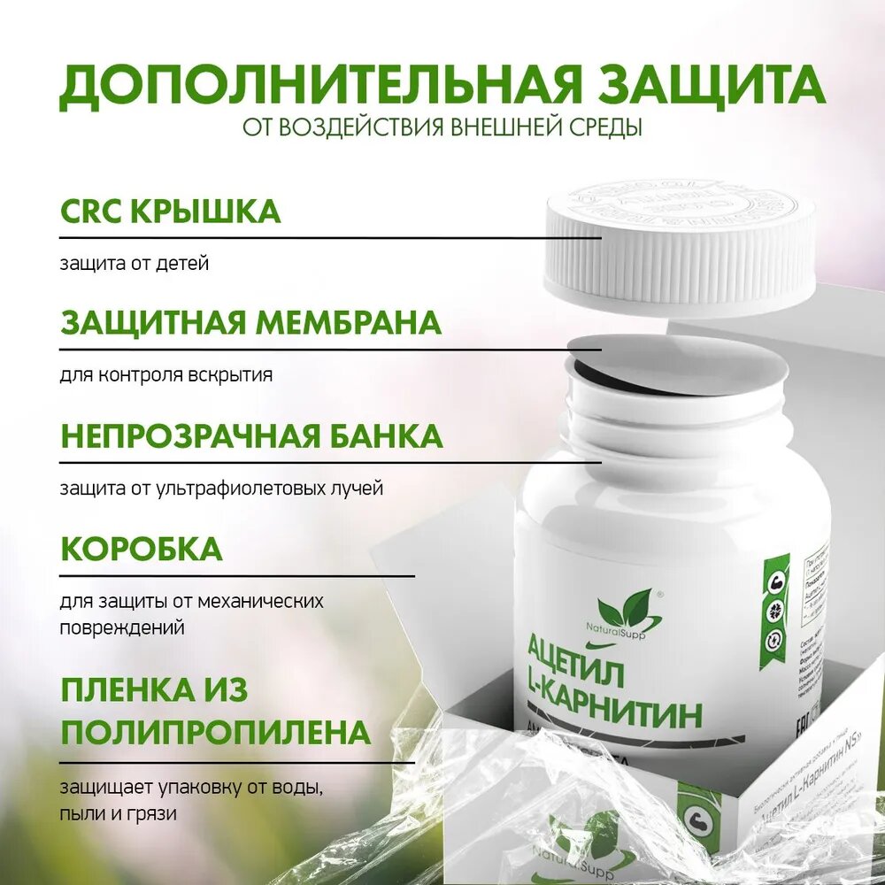 СохранитьNATURALSUPP Acetyl L-Carnitine Ацетиловый карнитин 600мг (60 капсул) (БАД) интересное: