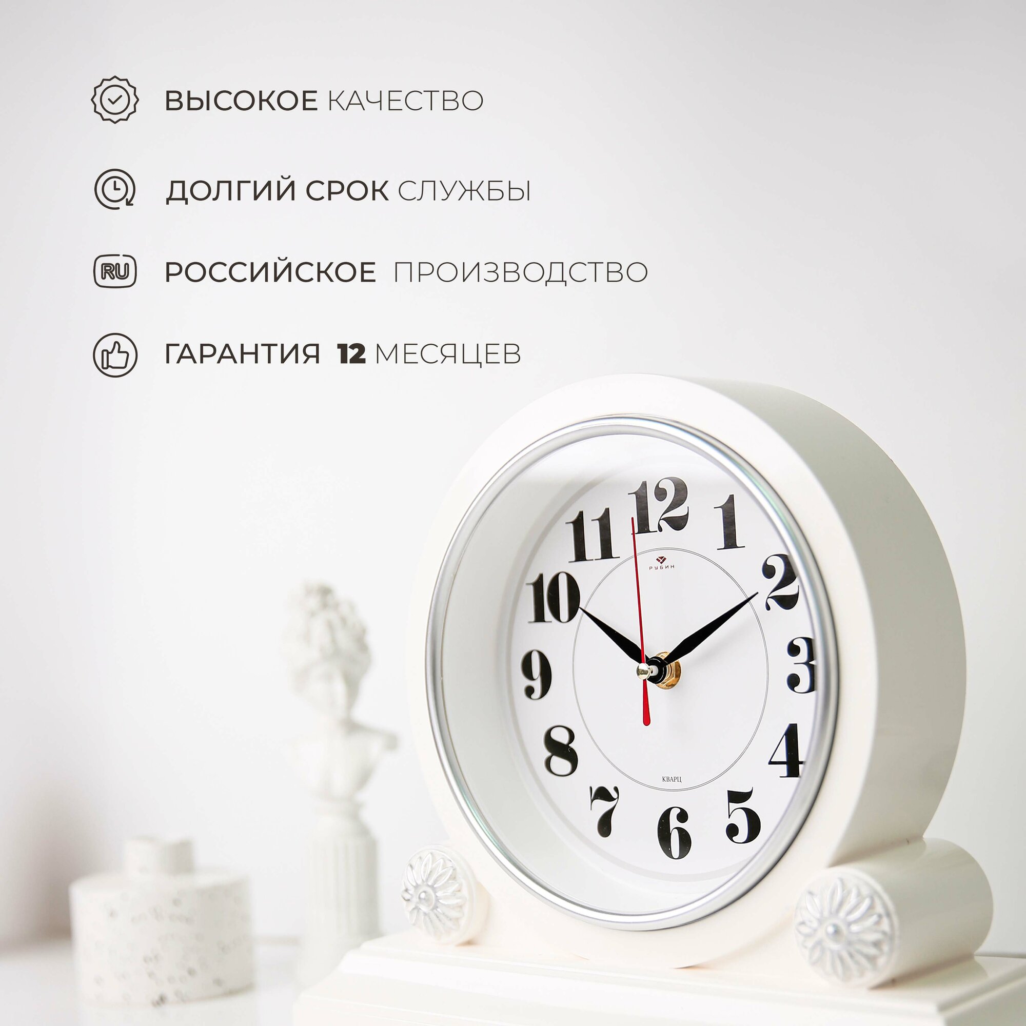 Часы настольные Рубин бесшумные, 30 х 26 см белые кварцевые интересное: