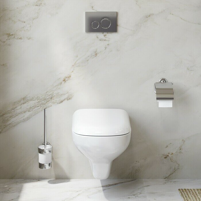 | Отзыв: | С блеском, но не чересчур, и не слишком светлая по цвету. К основном сантехнике подходит. Размер рамки стандартный получился, а вот в толщину тонкая совсем, на стене не выделяется. Пневматика отлично работает, кнопки до конца ходят, не скрипят и сильно давить не приходится |