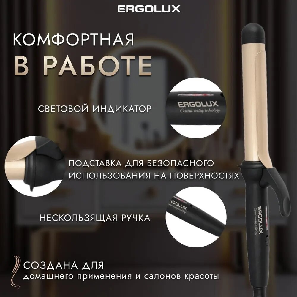 Купить Плойка Ergolux диаметр 25мм, керамическое покрытие, 23W, черный с золотом