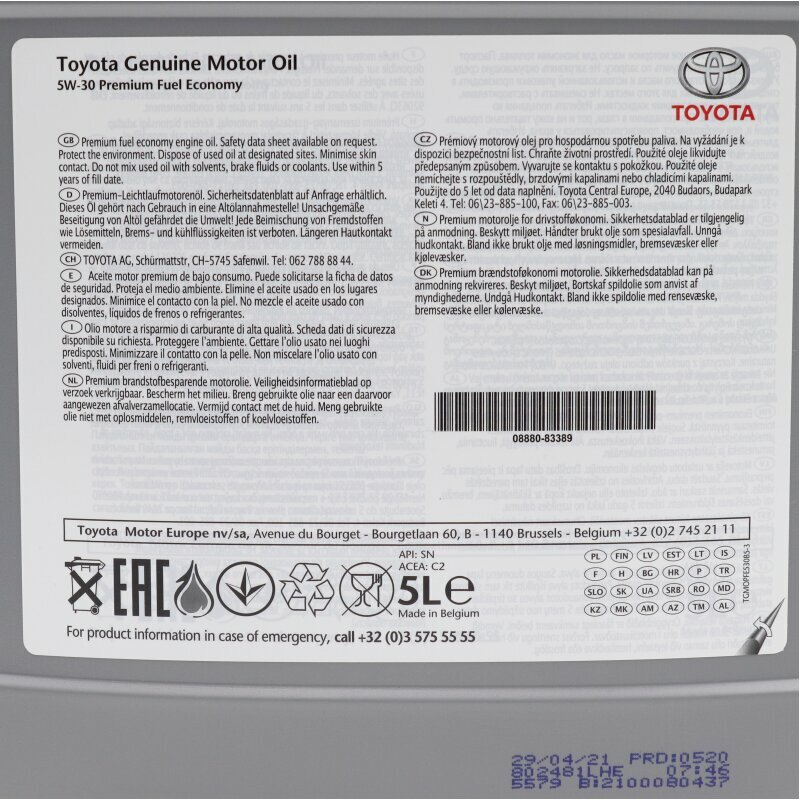 TOYOTA Масло Моторное Toyota Premium Fuel Economy Pfe 5w-30 Синтетическое 5 Л 08880-83389