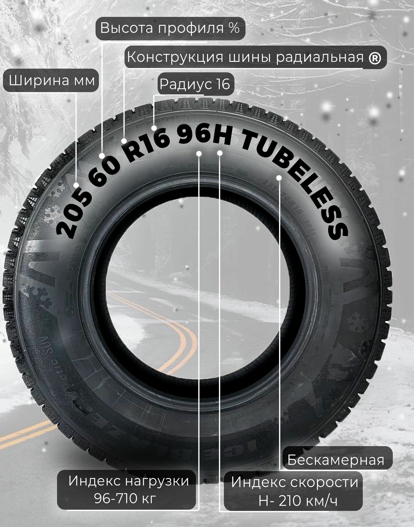 | Тип зимних шин | для северной зимы |