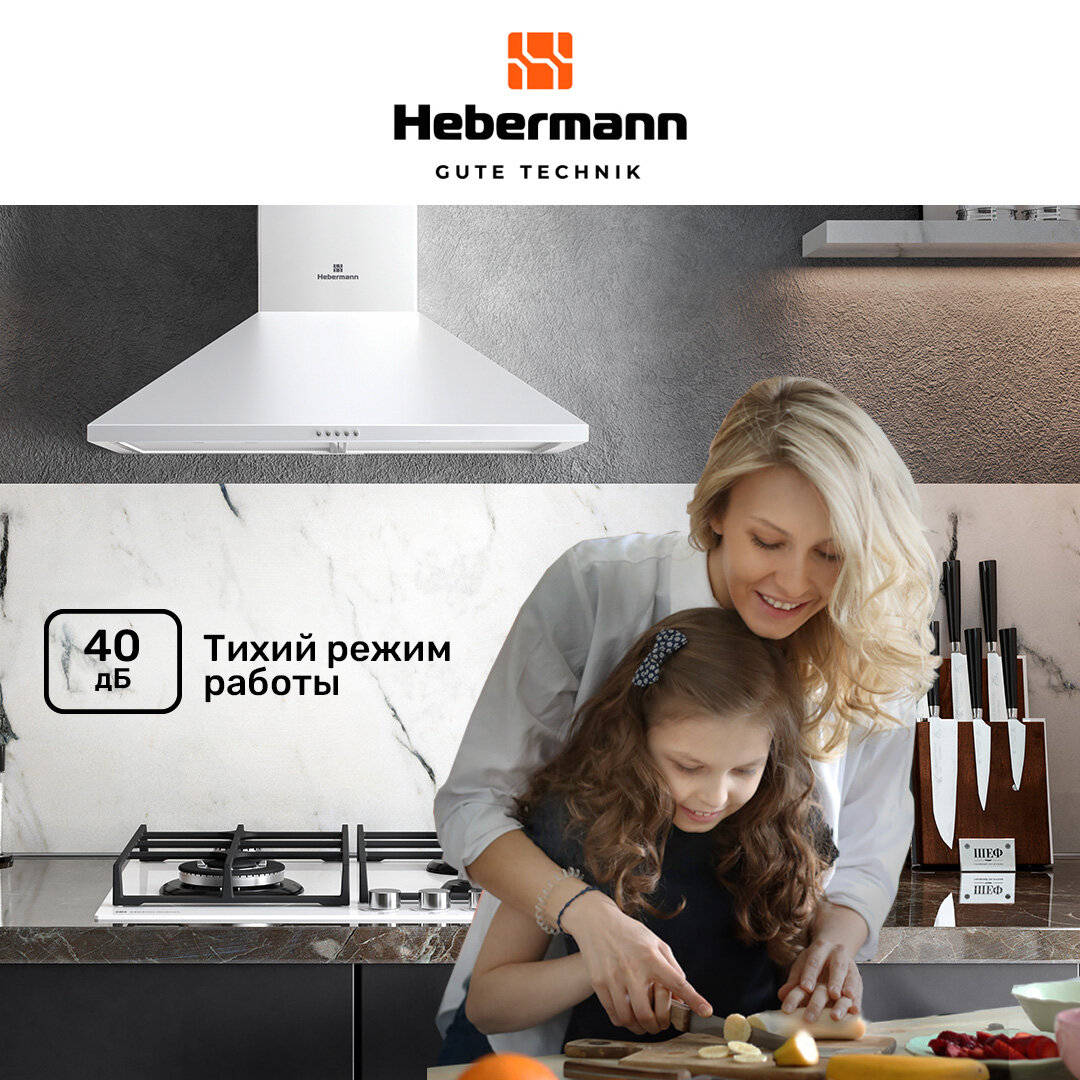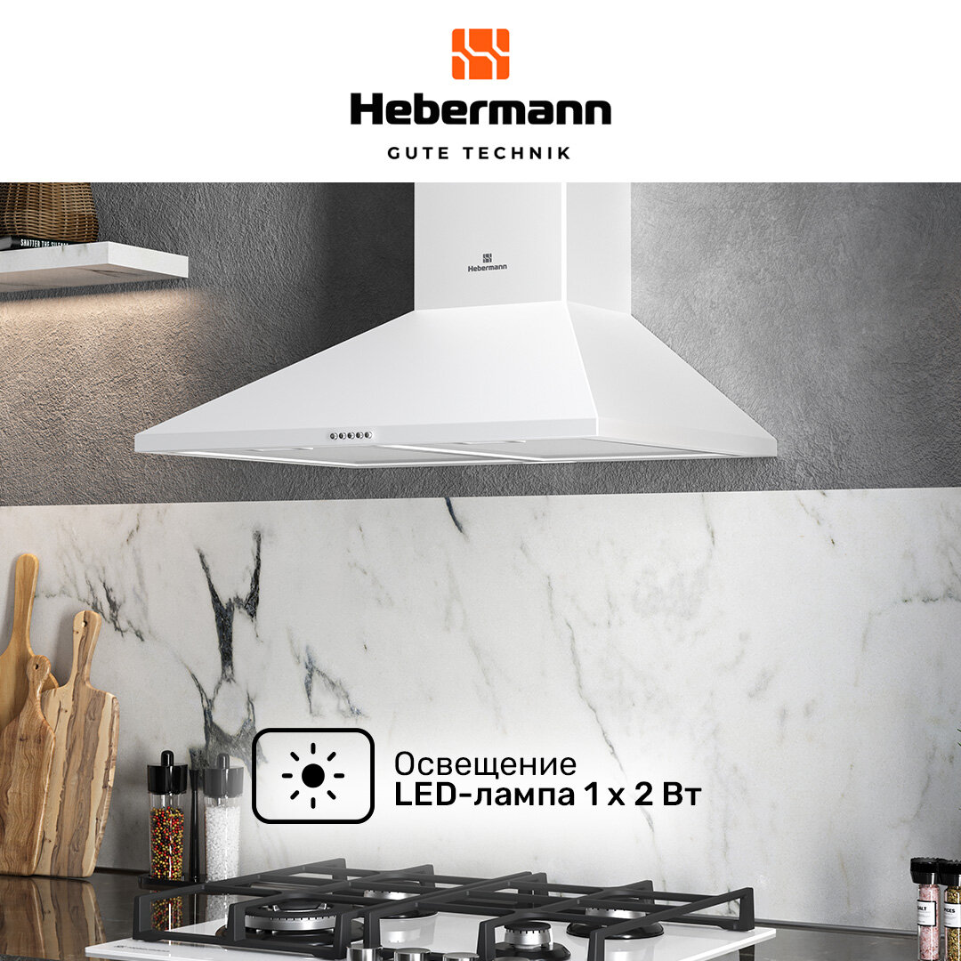 Кухонная вытяжка купольная Hebermann HBWH 60.1 W, HEKS100043