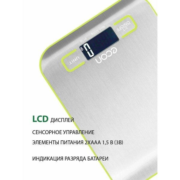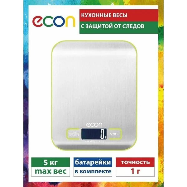 Весы кухонные ECON ECO-BS201K до 5 кг, серебристый интересное: