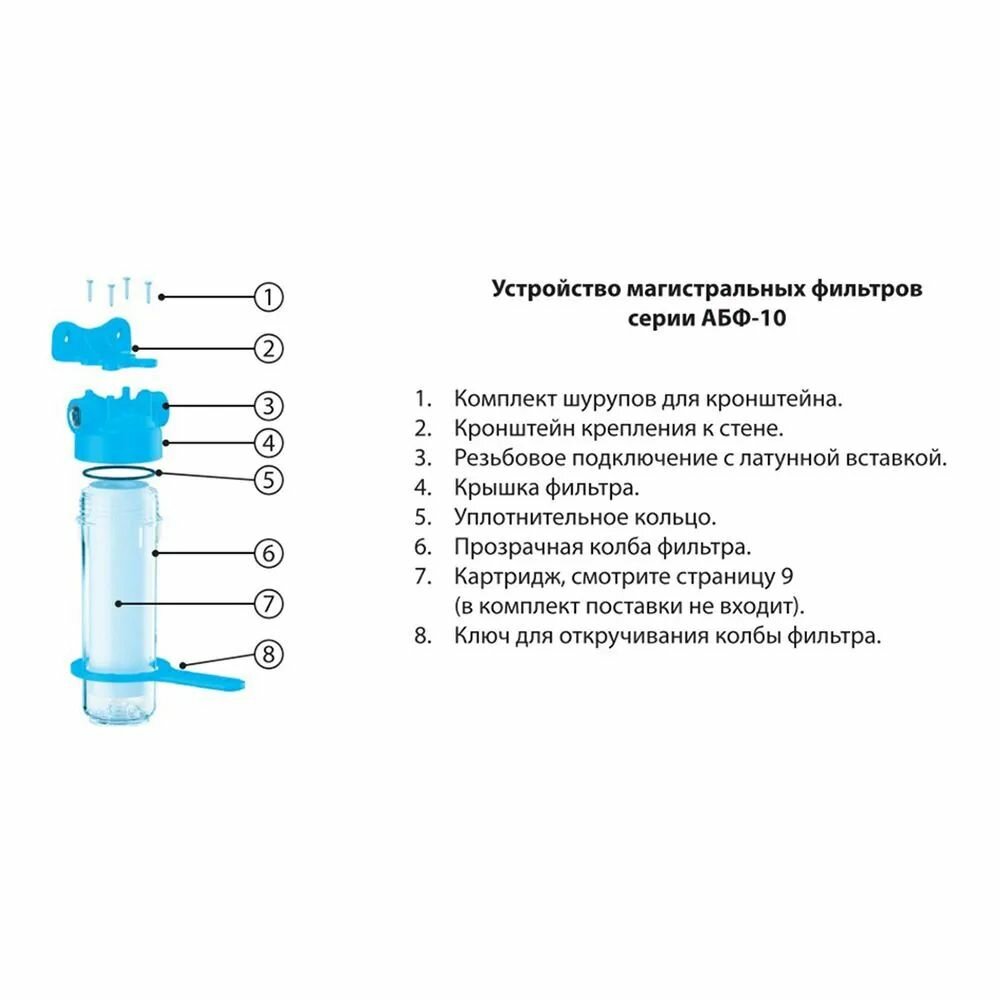 Фильтр магистральный "Аквабрайт АБФ-10-12" прозрачный/синий