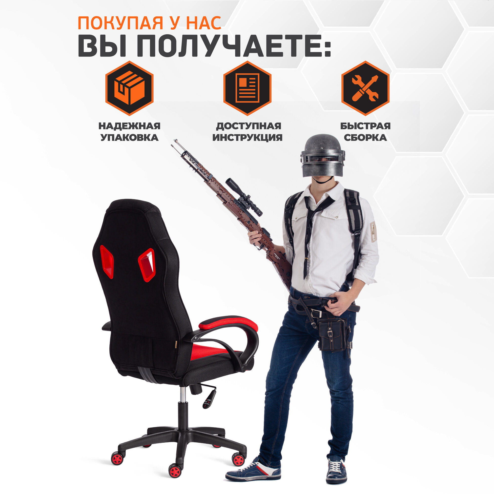 Купить Кресло компьютерное игровое TetChair PILOT, ткань, флок, черный, красный