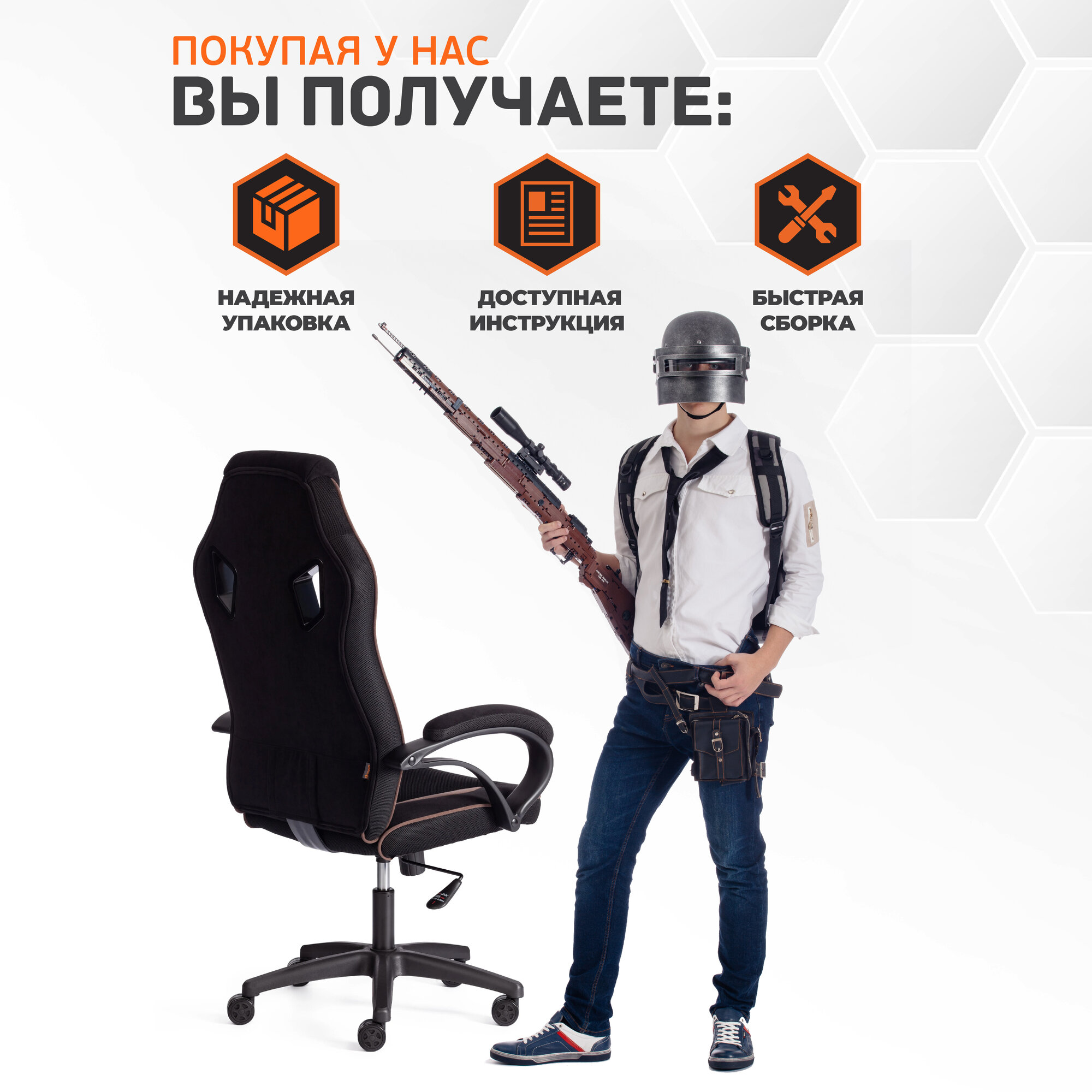 Купить Кресло компьютерное игровое TetChair PILOT, флок/ткань, черный/коричневый