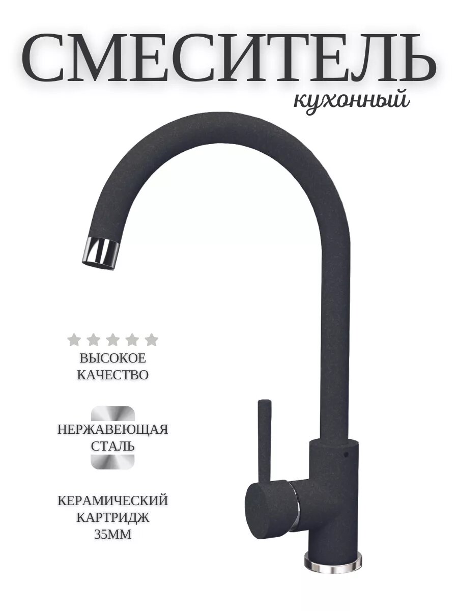 Смеситель для кухни / мойки Florentina альфа (ALFA FL), высокий излив, черный