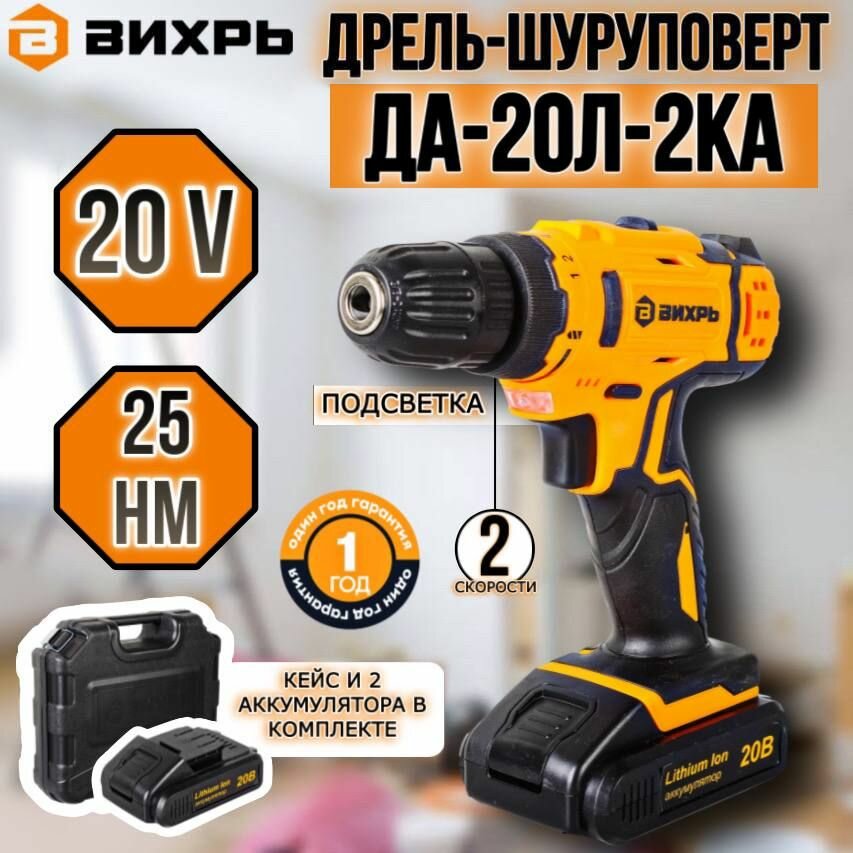Аккумуляторная дрель-шуруповерт вихрь ДА-24Л-2К 2021