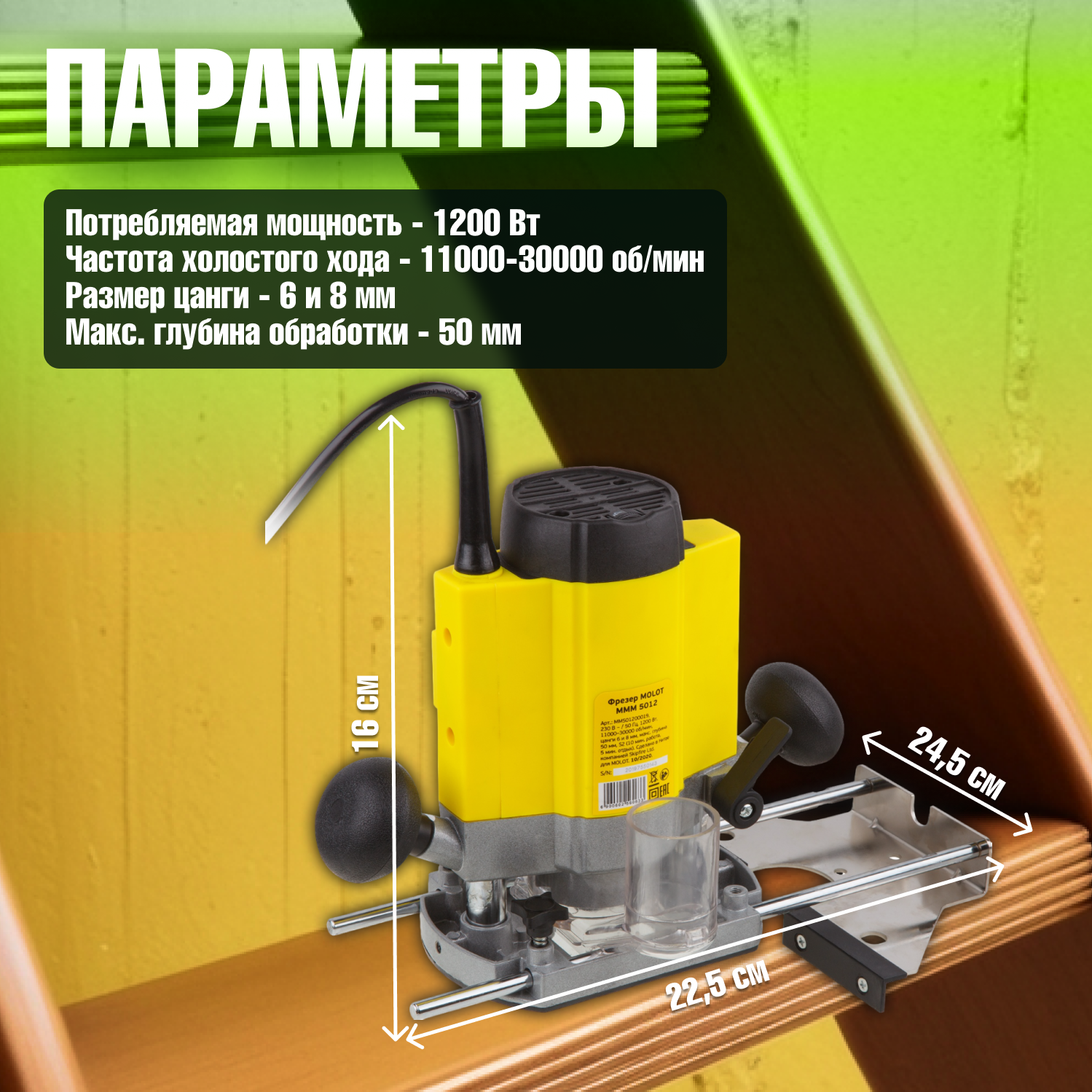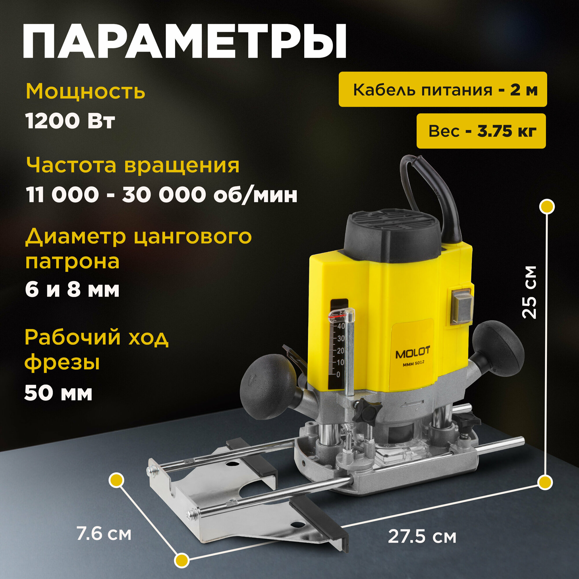 Фрезер по дереву MOLOT MMM 5012 цанги 6 и 8 мм (MMM501200019) интересное: